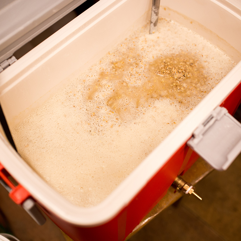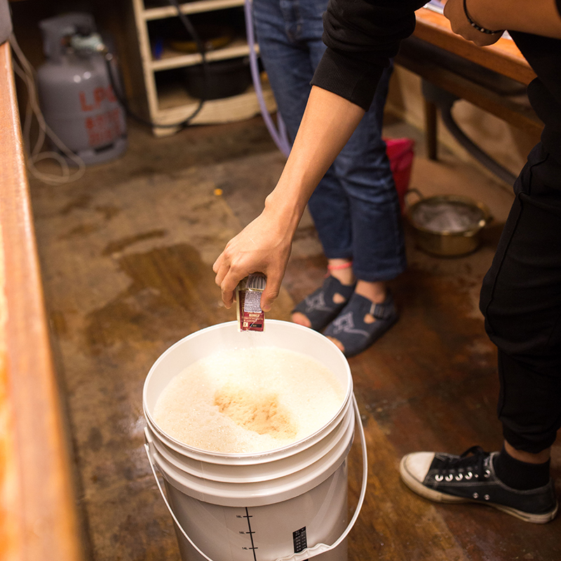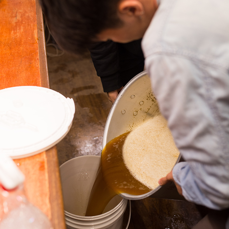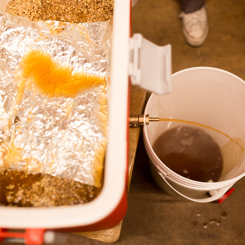 직접 곡물을 끓이고 홉과 효모를 넣습니다.
